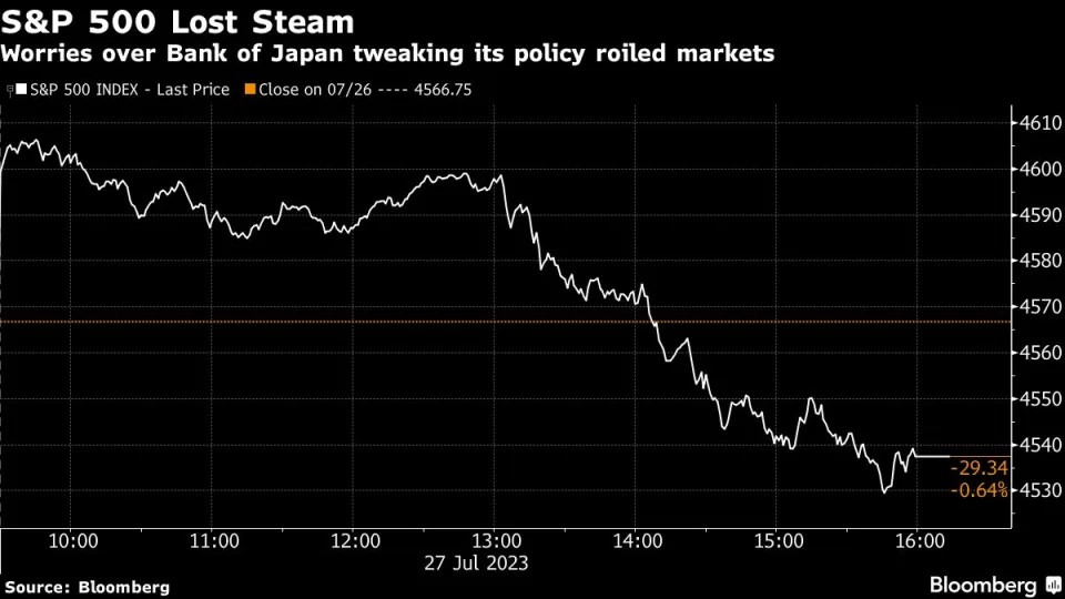 Treasury yields spiked, the yen jumped, and what had been another rousing rally in the S&P 500 quickly reversed. Pain spread rapidly across asset classes as traders came to grips with prospects that the last major central bank to resist restrictive policy might cave.