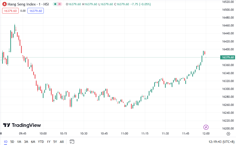 • Hang Seng Index (HSI) increased by 0.21%, closing at 16,379.6 points.