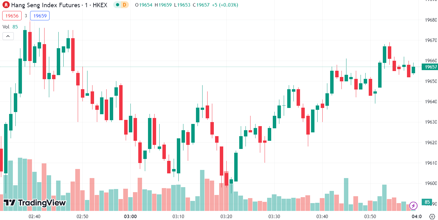 - Hang Seng Index: Up 0.49% at 19,650.18