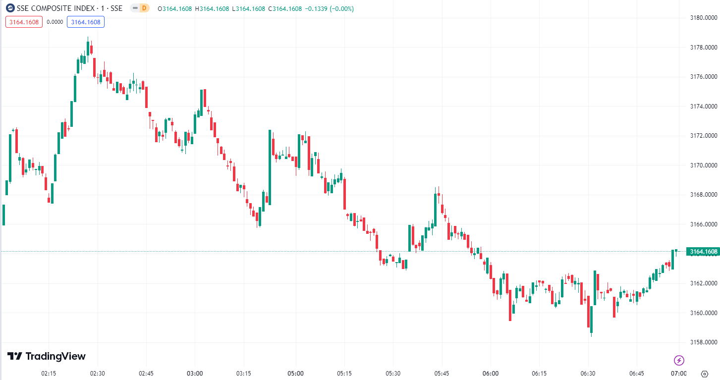 • Shanghai Composite declined by 0.11%, closing at 3,164.16 points.