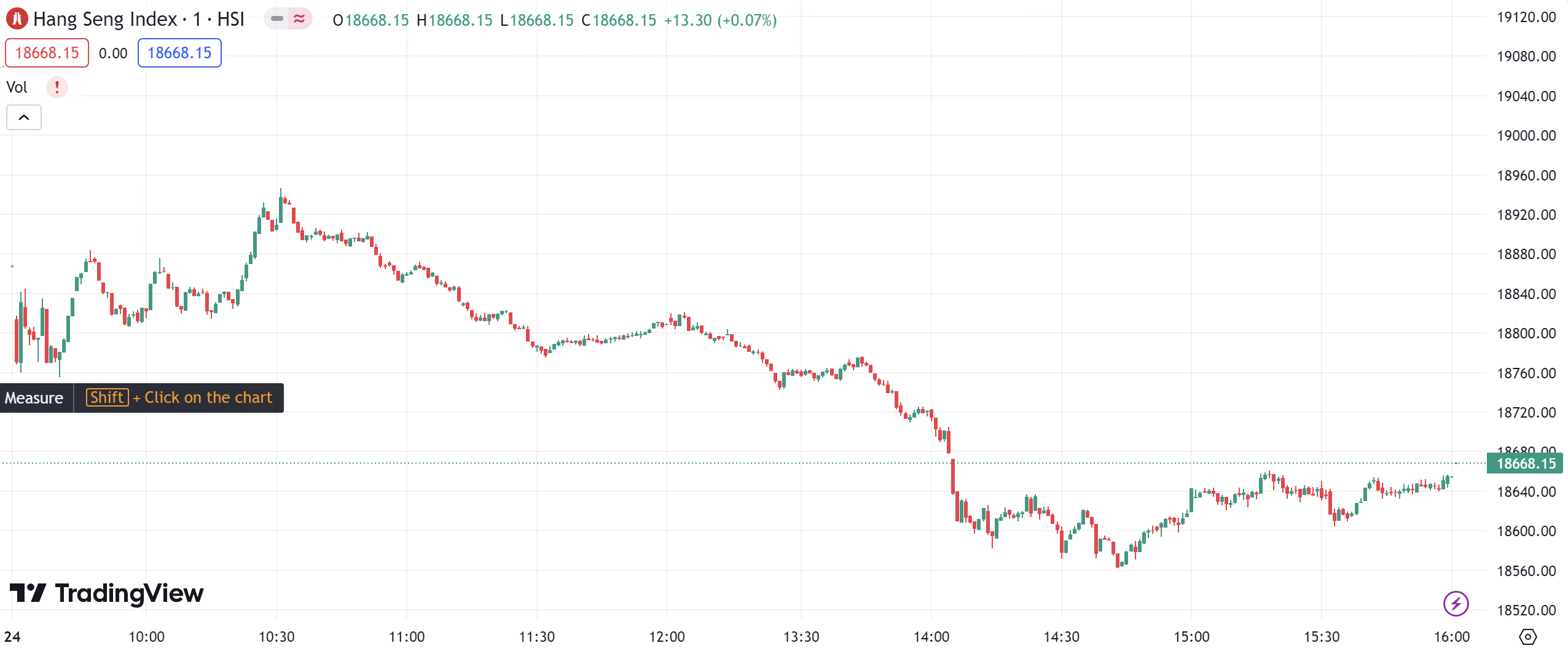 • Hang Seng Index declined by 2.13%, closing at 18,668.15 points.
