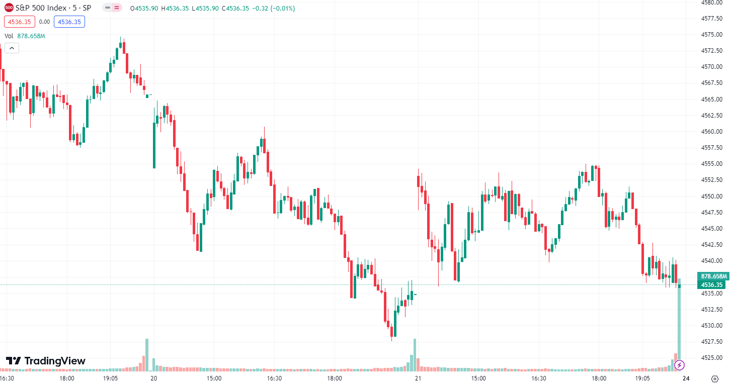 • S&P 500 rose by 1.47 points, a modest increase of 0.03%, closing at 4,536.35 points.