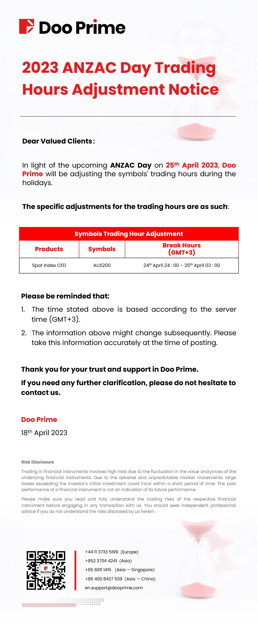 2023-04-18 | Holiday Hours , Trading Hours Adjustment