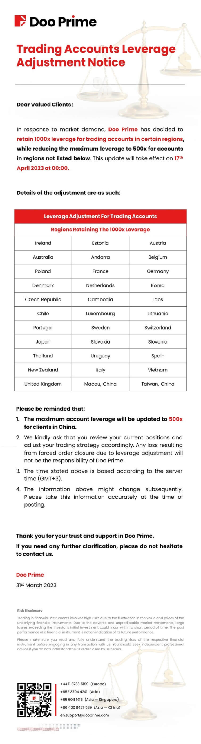 Doo Prime Trading Accounts Leverage Adjustment Notice