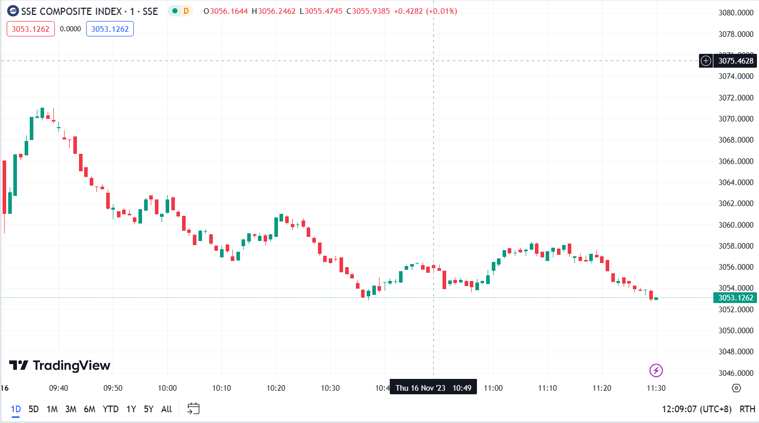 - Shanghai Composite Index (SHCOMP) declined by 0.64%, closing at 3,053.13 points.