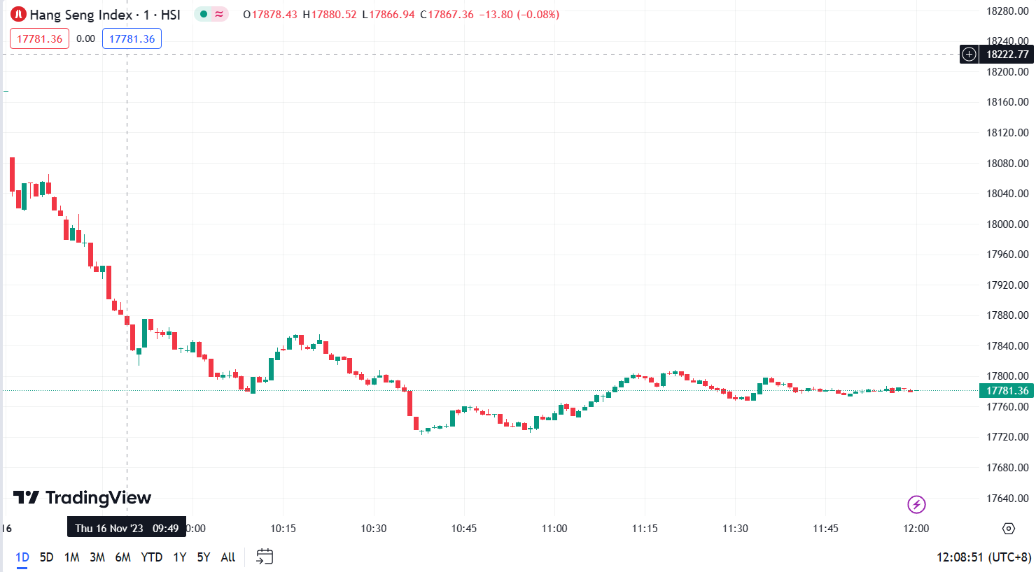 - Hang Seng Index (HSI) declined by 1.65%, closing at 17,781.36 points.