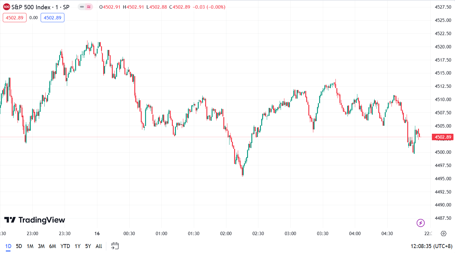 - S&P 500 Index declined by 7.18 points, a 0.16% increase, closing at 4,502.88 points.