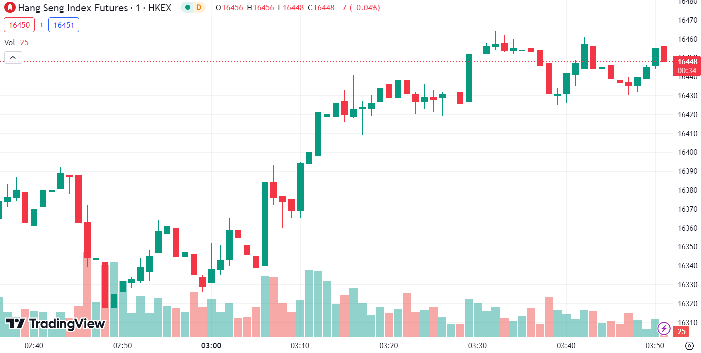 • Hang Seng Index (HSI) increased by 1.18%, closing at 16,420.55.