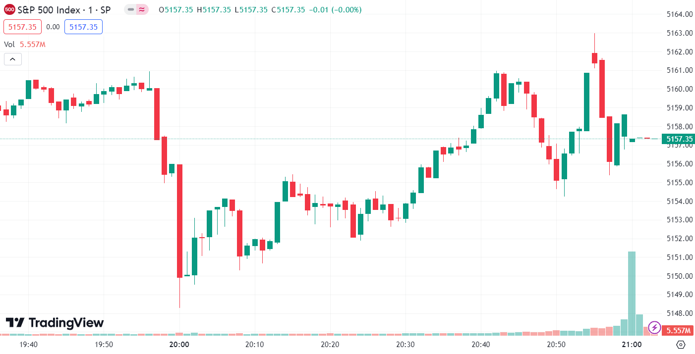 • S&P 500 index rose by 52.60 points, or 1.03%, to close at 5,157.36.