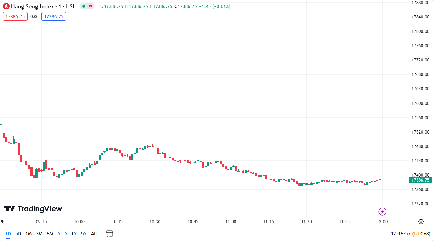 - Hang Seng Index (HSI) declined by 1.95%, closing at 17,386.75 points.