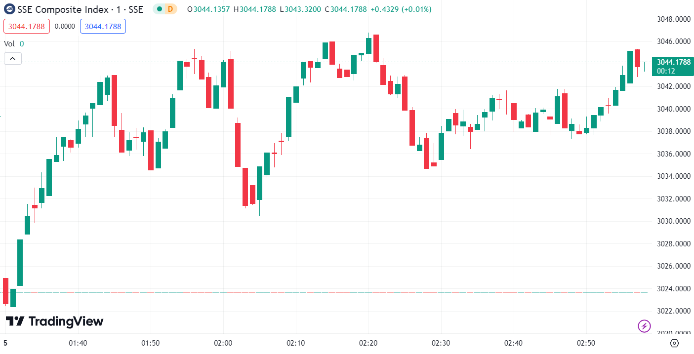 - Shanghai Composite Index (SHCOMP) rose by 0.26%, closing at 3,047.20 points.