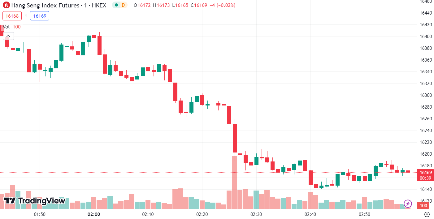 - Hang Seng Index (HSI) fell by 1.95%, closing at 16,272.77 points.