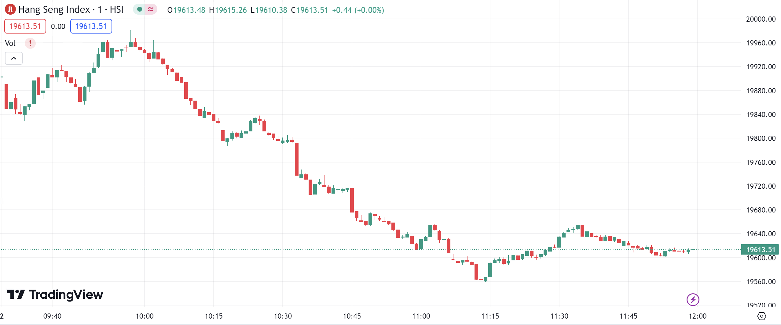 - Hang Seng Index closed lower by 1.99%, at 19,613.51 points, falling below the 20,000 mark.
