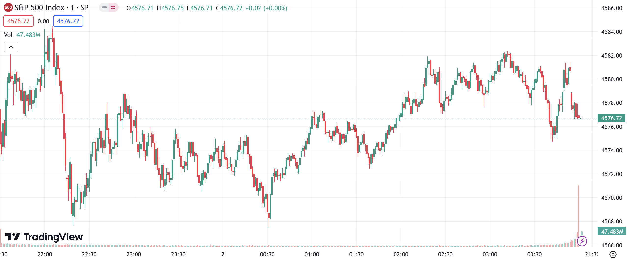 - S&P 500 Index closed lower by 12.23 points, a decline of 0.27%, at 4,576.73 points.