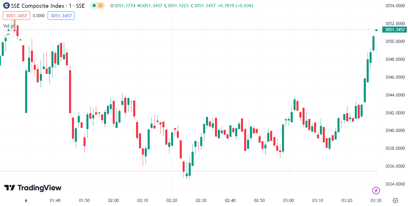 • Shanghai Composite Index (SHCOMP) rose by 0.12% to close at 3,051.35 points.