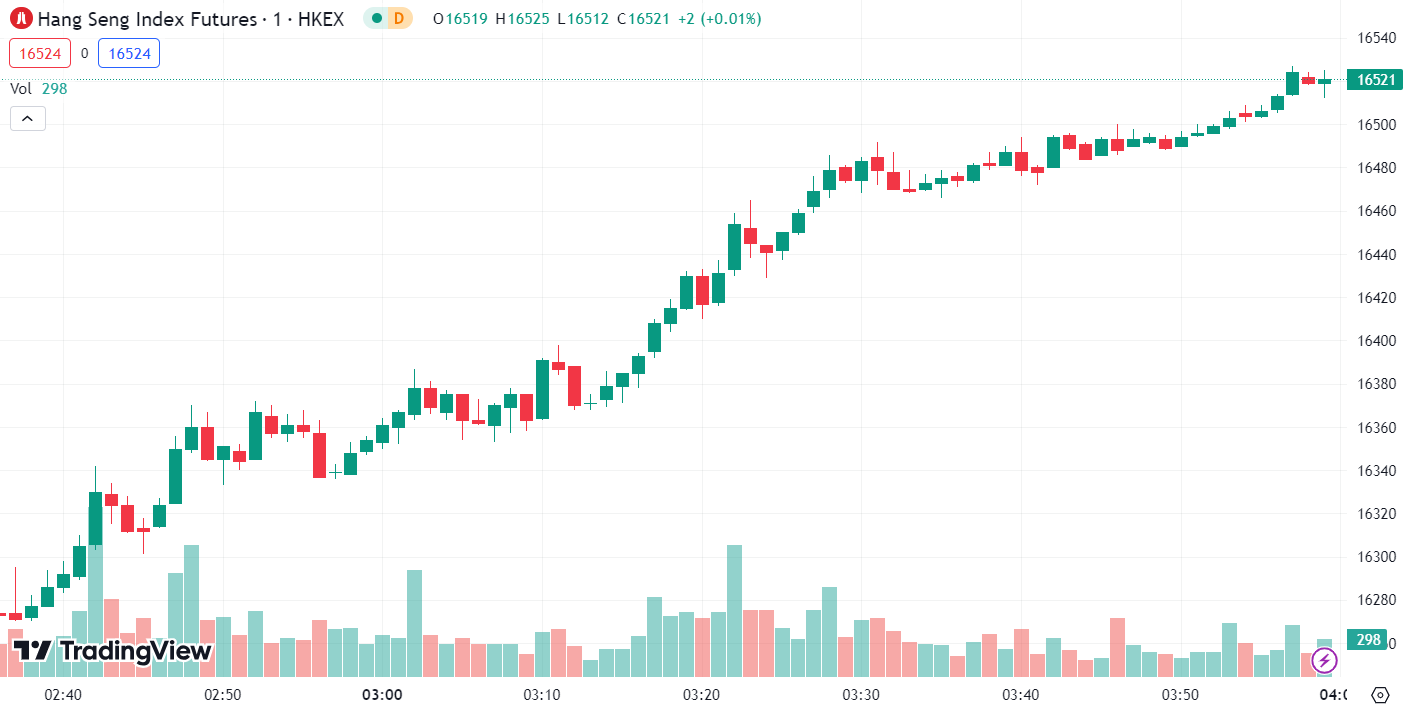 • Hang Seng Index (HSI) rose by 2.33% to close at 16,539.01 points.