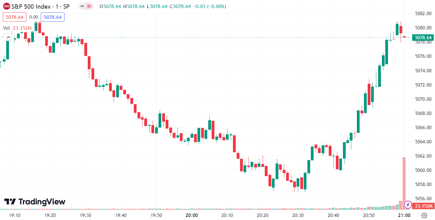 • S&P 500 index decreased by 52.30 points, or 1.02%, to close at 5,078.65 points.