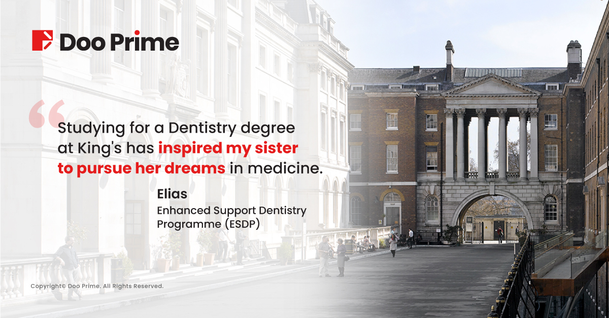 Moreover, studying for a Dentistry degree at King’s has also inspired my younger sister to achieve great things, as she also hopes to study medicine at King’s one day.”