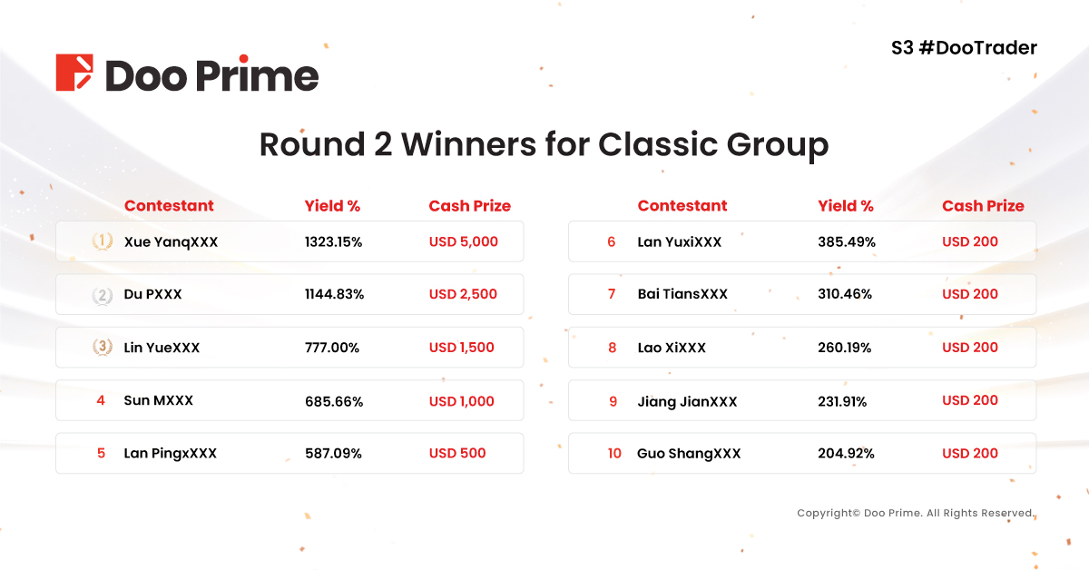 The second round of competition concluded with super high returns achieved by top players from the Master and Classic Groups. The rankings are shown specifically as below: