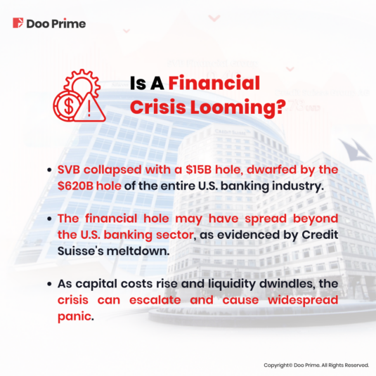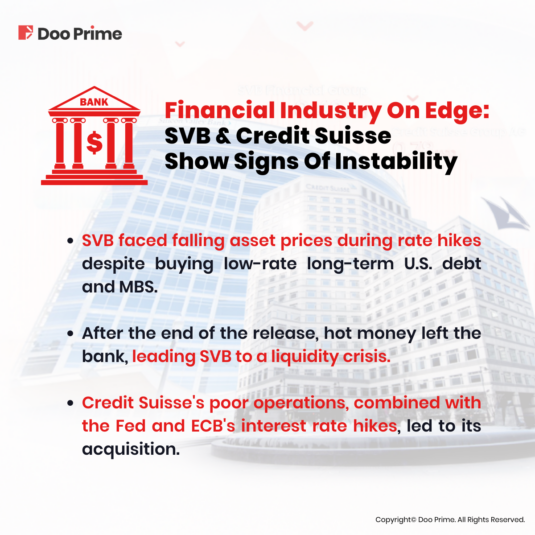 On 10th March 2023, Silicon Valley Bank (SVB), which was once the nation’s 16th-largest bank, suddenly announced its collapse after a run on depositors. A few days later, Credit Suisse, a leading investment bank with over 100 years of history, postponed its 2022 annual earnings report, subsequently sparking panic about its financial data and causing its share price to plummet. In the end, UBS acquired Credit Suisse for 3 billion Swiss francs, brokered by the Swiss government.