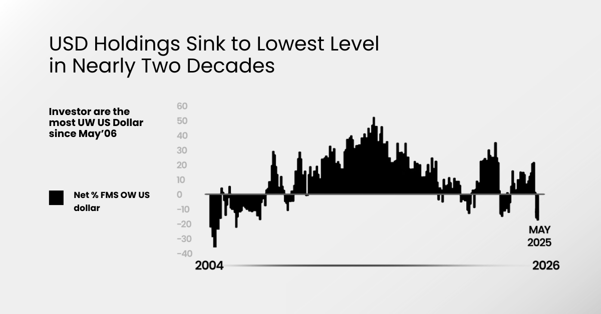 The dollar’s role as the world’s top reserve and safe-haven currency is being challenged. According to a recent Bank of America survey, global fund managers have reduced their dollar allocations to the lowest level since May 2006, underscoring waning appetite for US assets.