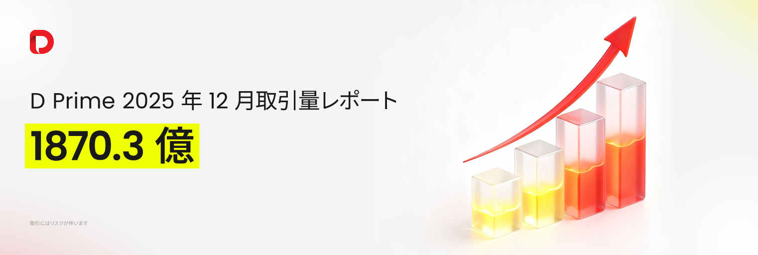 報告によると、D Primeの2025年12月の総取引高は約1870.3億USDで、前月比11.77%の増加となりました。日平均取引高(ADV)は60.33億USDで、前月比8.17%の上昇を記録しています。