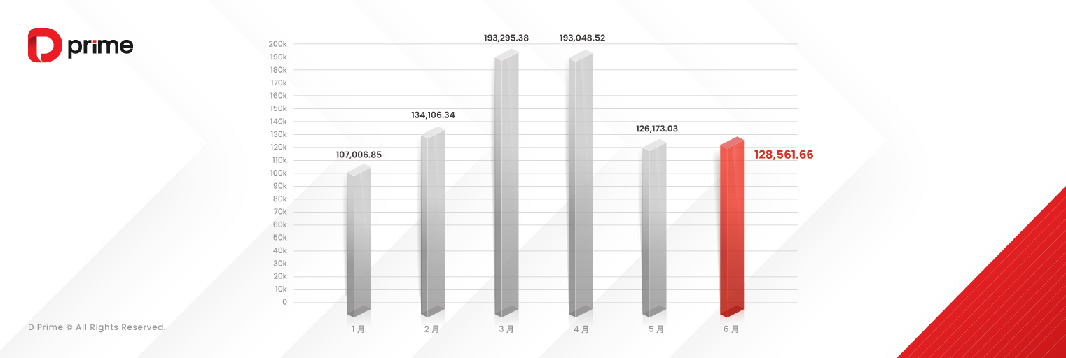 このような中、 D Prime の6月の総取引量は前年同月比で約21.79%増となり、不安定な市場環境でも成長を継続できる強さを証明しました。
