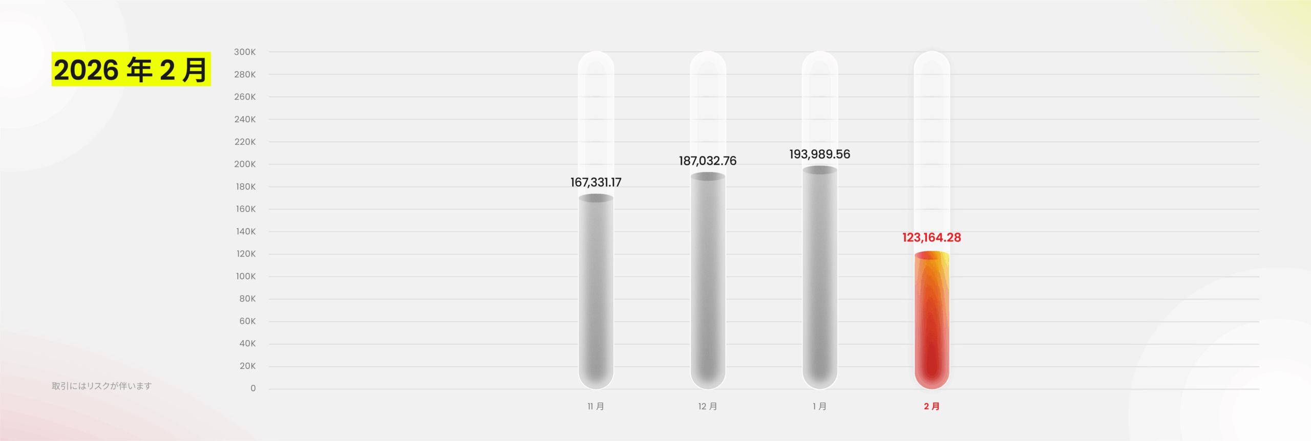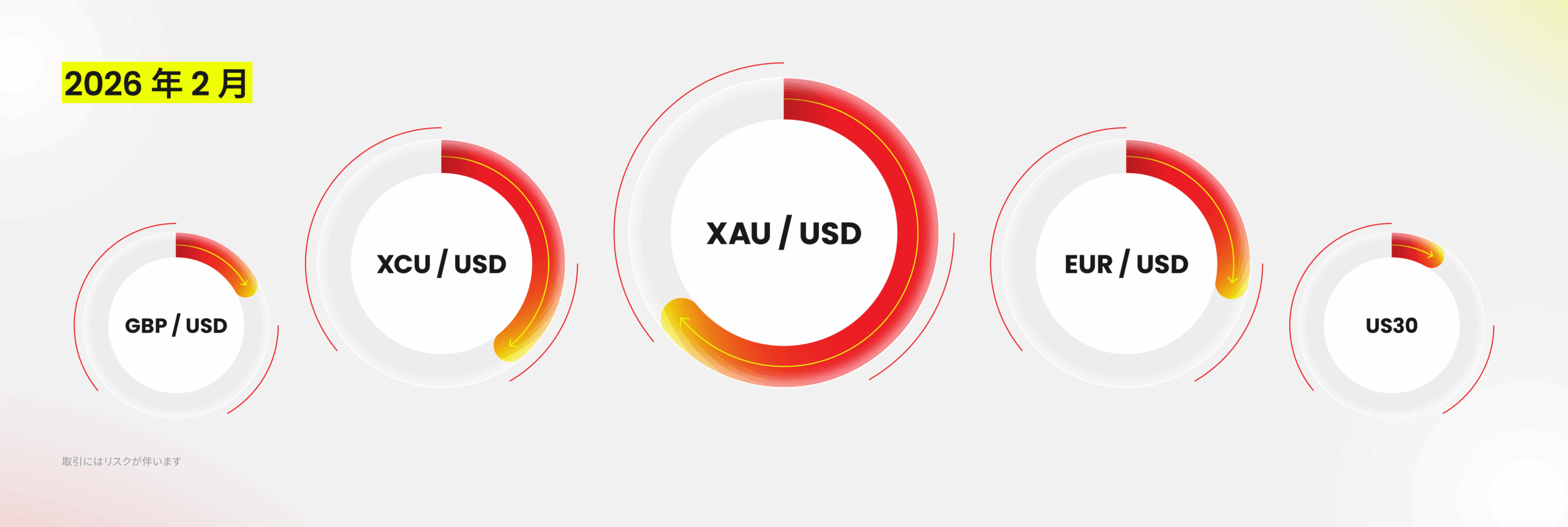 2月の国際金融市場は、1月と比べてやや落ち着いた動きとなりました。主要資産はそれまでの大きな変動から段階的なレンジ相場へ移行し、市場心理も慎重姿勢へ。これに伴い、取引参加の勢いもやや鈍化し、プラットフォーム全体の取引量も前月より縮小する結果となりました。