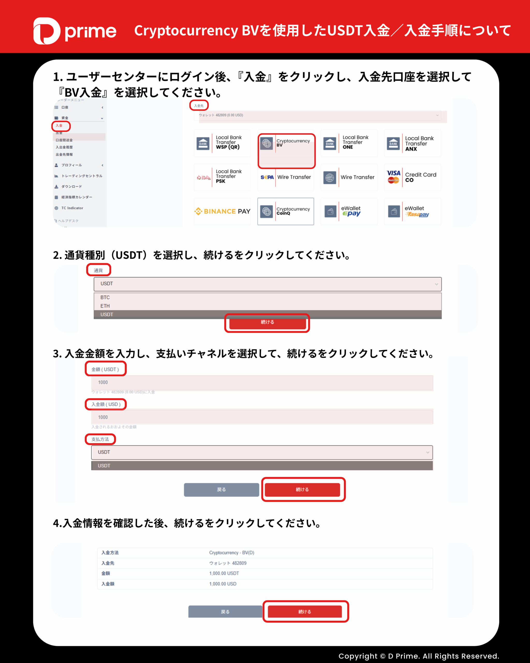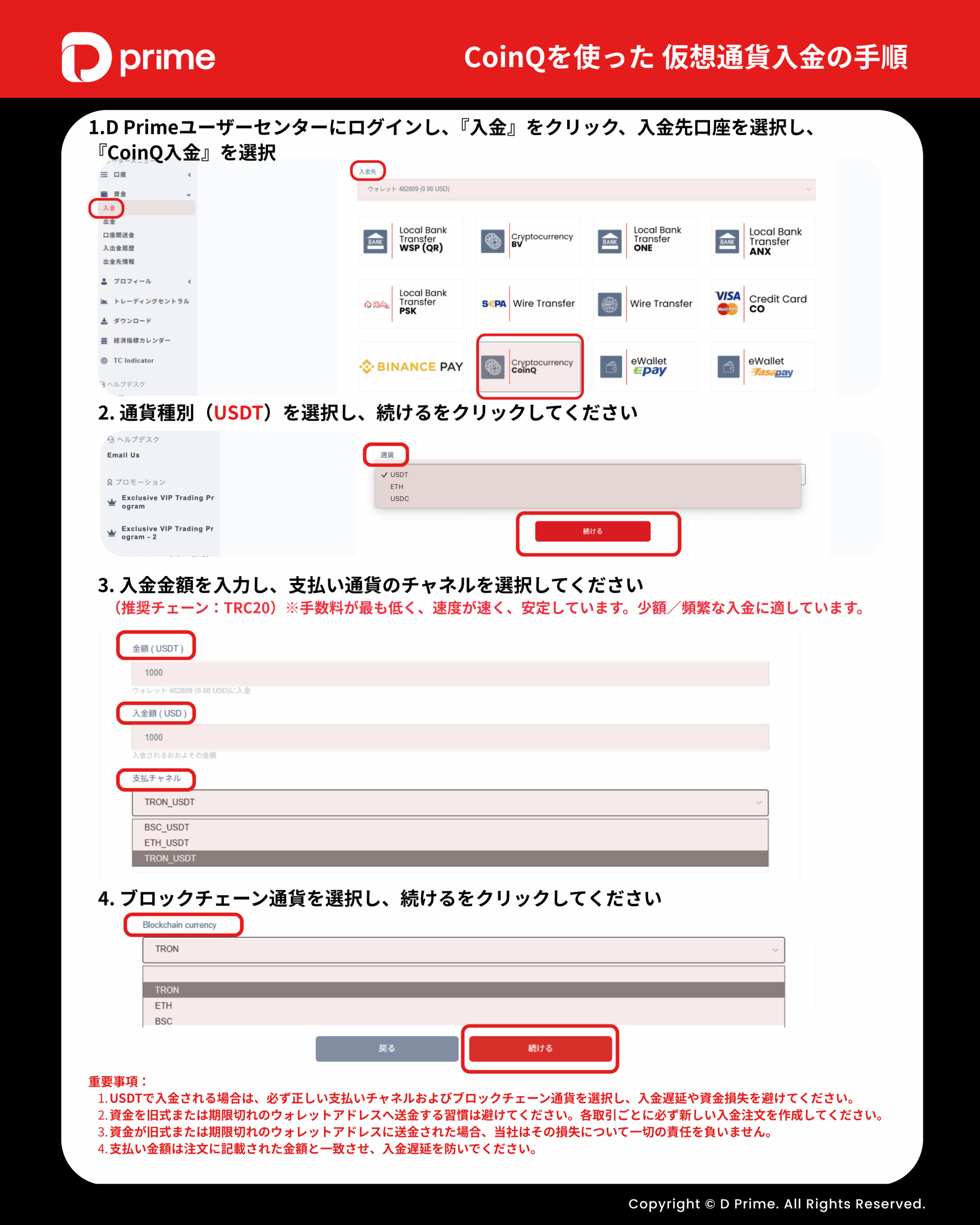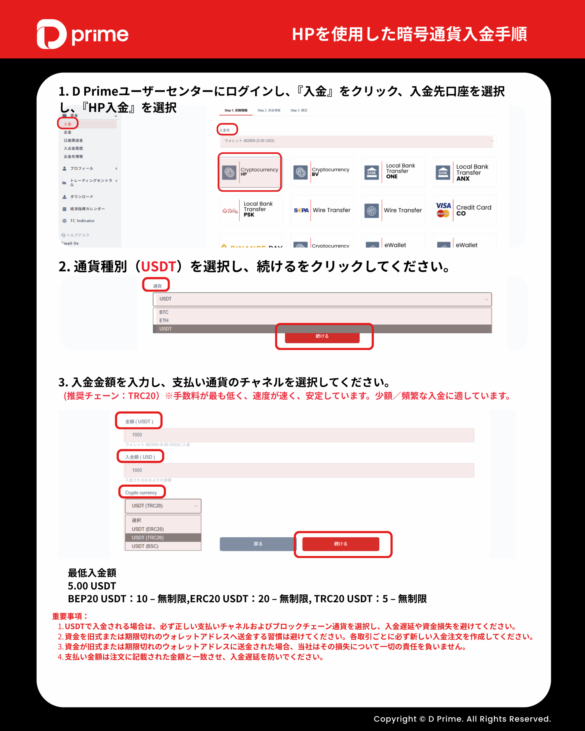 下記の図の入金手順をご参照ください: