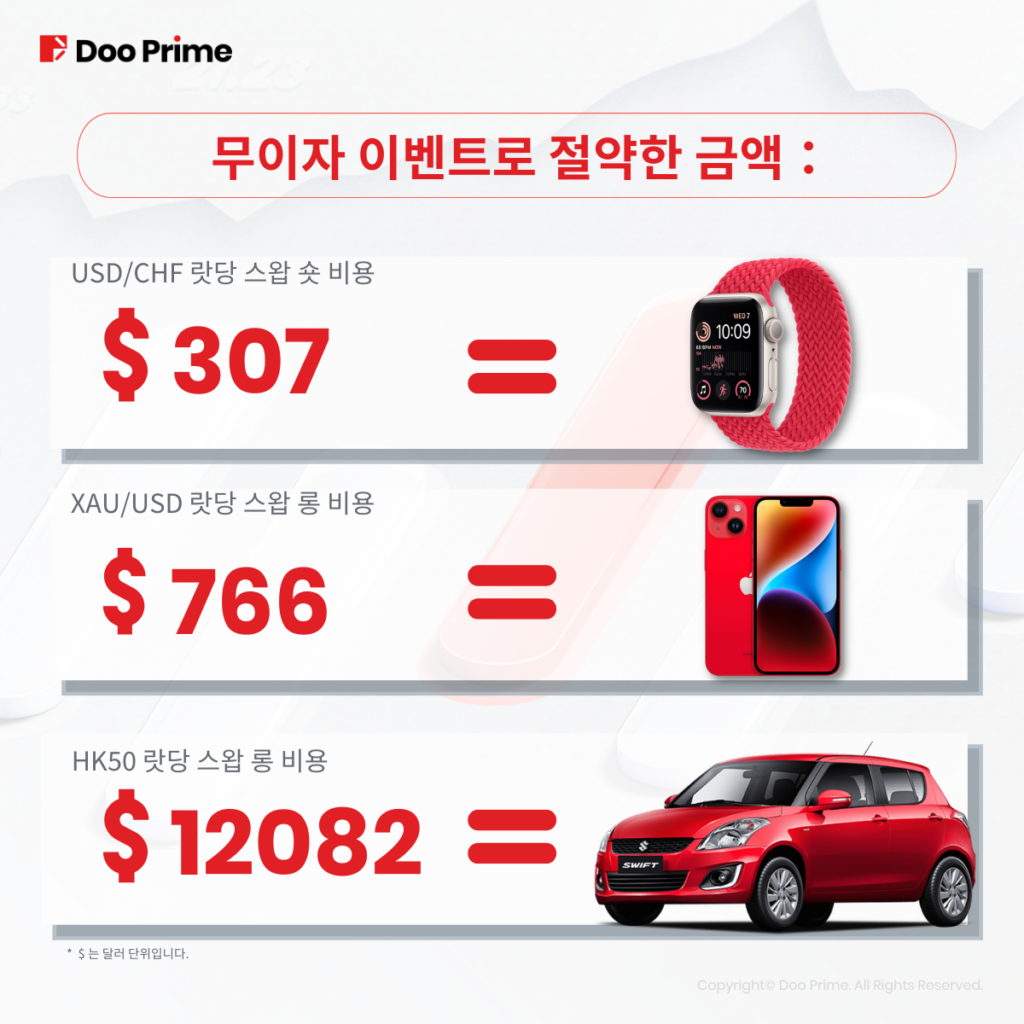 Doo Prime은 모든 고객님들에게 전문적인 서비스와 양호한 경험을 제공하기 위해 노력하고 있습니다. 이번 이벤트는 거래 비용과 위험을 최소화하여 투자 수익을 극대화 할 수 있도록 돕기 위한 것입니다.