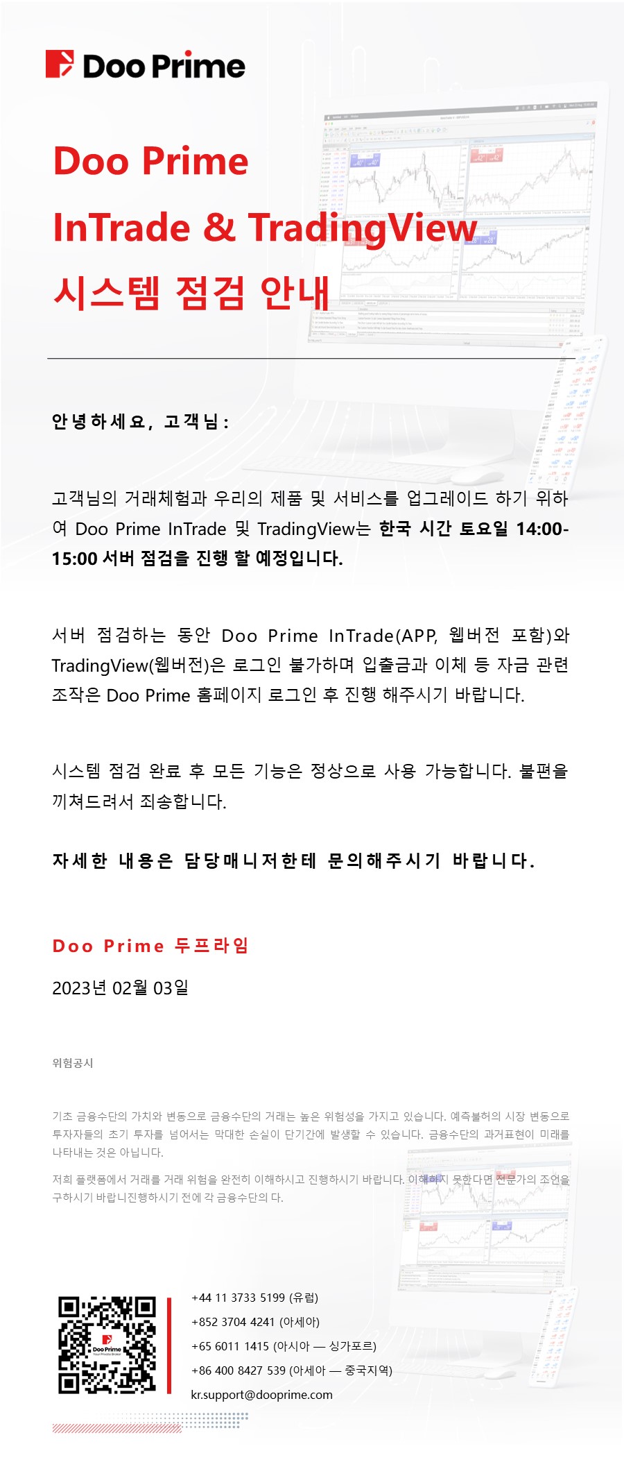 Doo Prime InTrade & TradingView 시스템 점검 안내