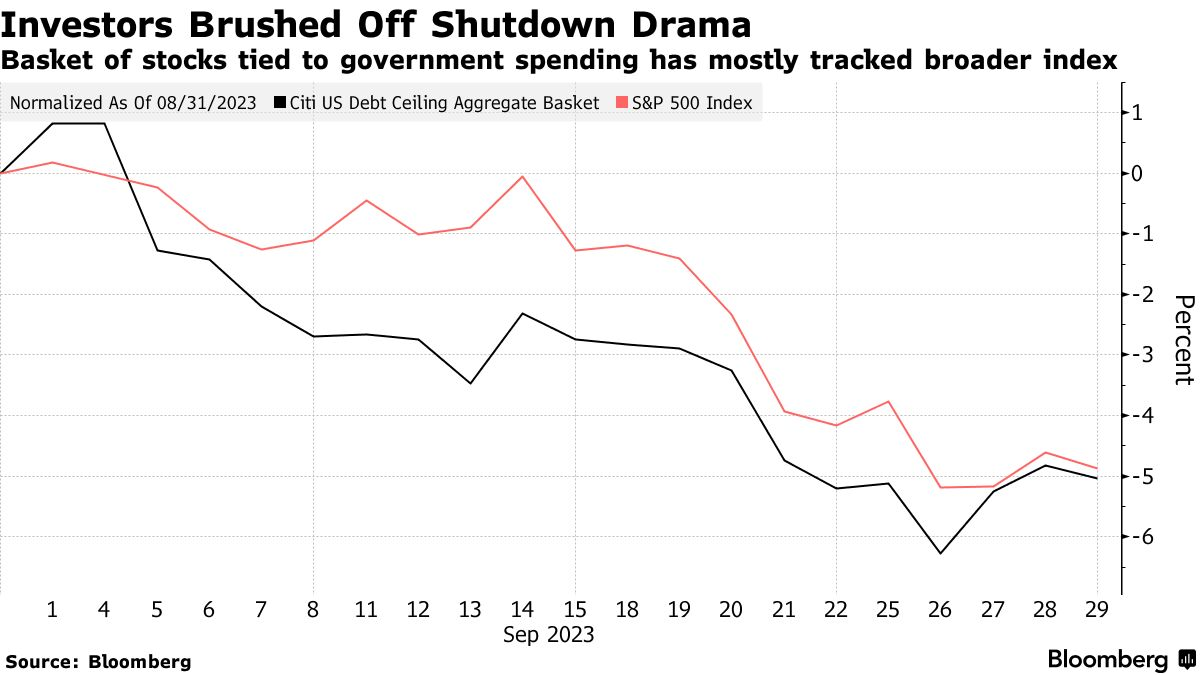 While money managers largely shrugged off the political circus in Washington, the passage of compromise legislation to keep the government running until November 17 gives financial markets some breathing room after the recent plunge in stocks and bonds.