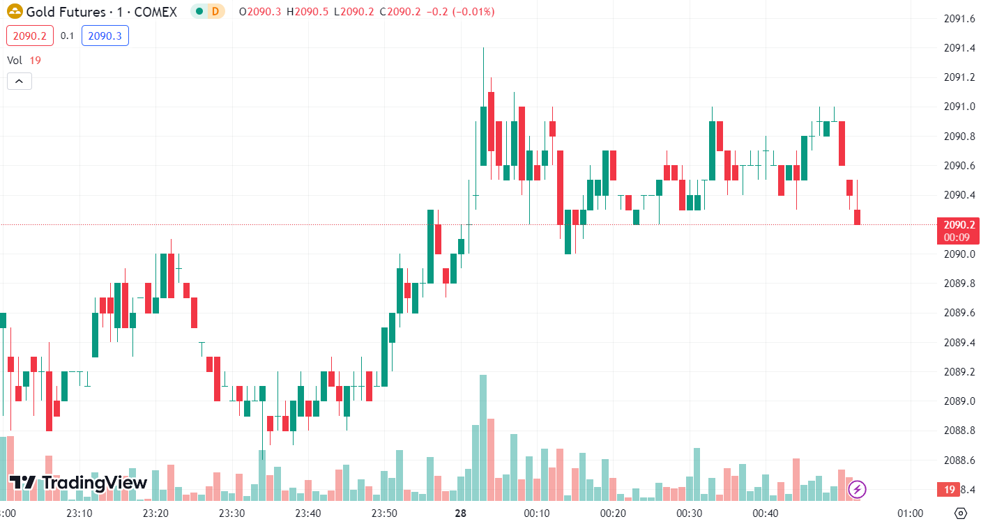 Spot gold reached its highest point since December 4th at USD 2084.36 per ounce during the session, closing at USD 2077.47. Gold futures rose by USD 23.3 per ounce compared to the previous trading day, closing at USD 2093.1 per ounce, with a gain of 1.13%.