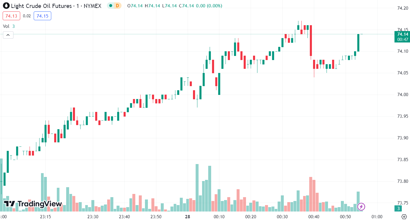 During the Asian and European sessions, prices oscillated in the range of USD 74.2 – USD 75.4, with a back-and-forth movement. In the late US session, there was a second rebound attempt, facing resistance around the USD 75.4 level, leading to a weak pullback and closing below the previous bottom.