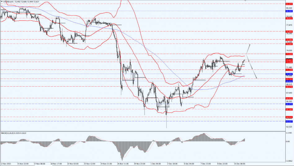 Today, oil prices are still paying attention to the 73.52-line. If oil prices run below the 73.52-line, maintain the bearish trend. Then, pay attention to the support at 71.13 and 69.75 in turn. If the oil price breaks above 73.52, it will open up a further upside. At that time, focus on the suppression of 75.04.