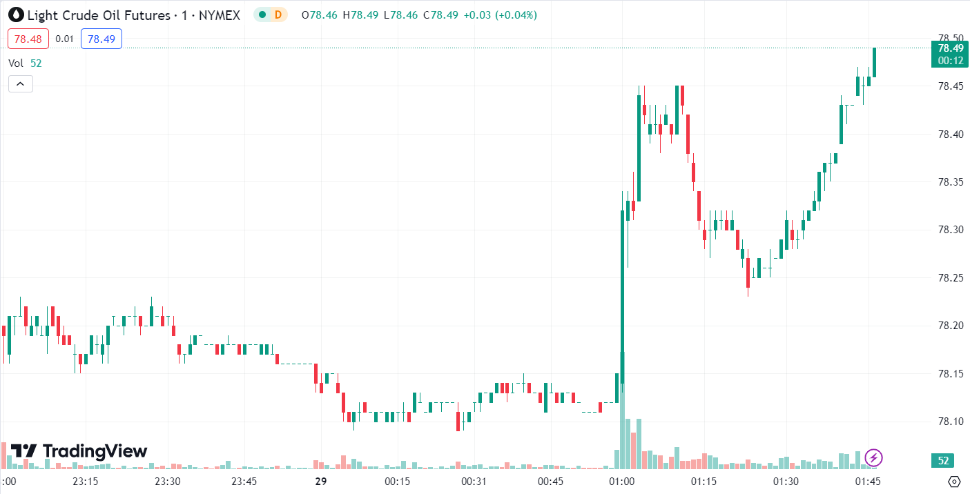 In the late US session, prices climbed slightly, breaking through the USD 79.2 level before encountering resistance and falling back, leading to a volatile close.
