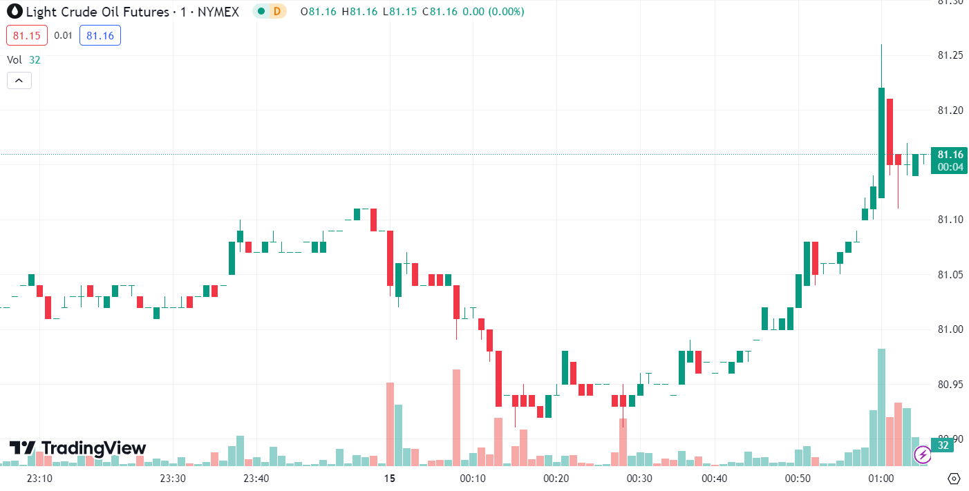 In the afternoon, prices quickly rose above the USD 80 mark and continued to strengthen. In the U.S. session, prices accelerated higher, breaking through the USD 81 level and continuing the strong bullish trend, ultimately reaching a recent rebound high of USD 81.6 and closing strongly.