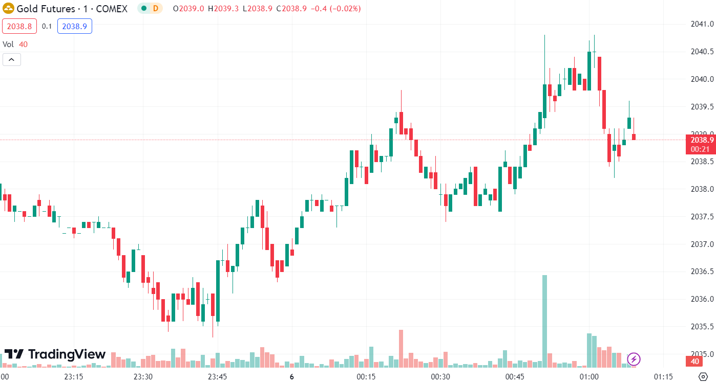 On Tuesday, spot gold touched a low of USD 2009.80 per ounce, closing at USD 2019.22 per ounce, down by 0.49%. Gold futures also fell by 0.29%, settling at USD 2036.30 per ounce.