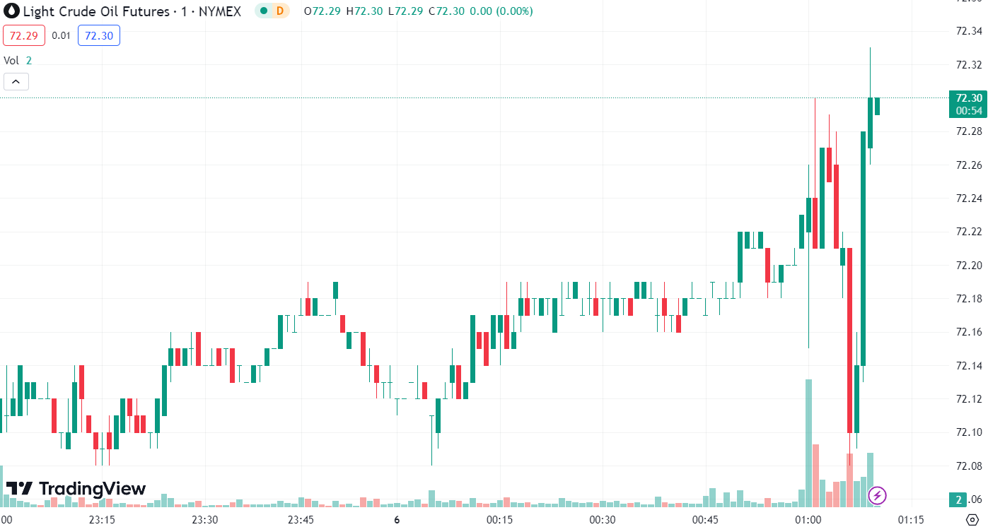 On Tuesday, WTI crude oil futures closed down by USD 0.72 per barrel, a decrease of 1.0%, settling at USD 72.32 per barrel. Brent crude oil futures closed at USD 77.20 per barrel, down by USD 0.83 per barrel, a decline of 1.06%.