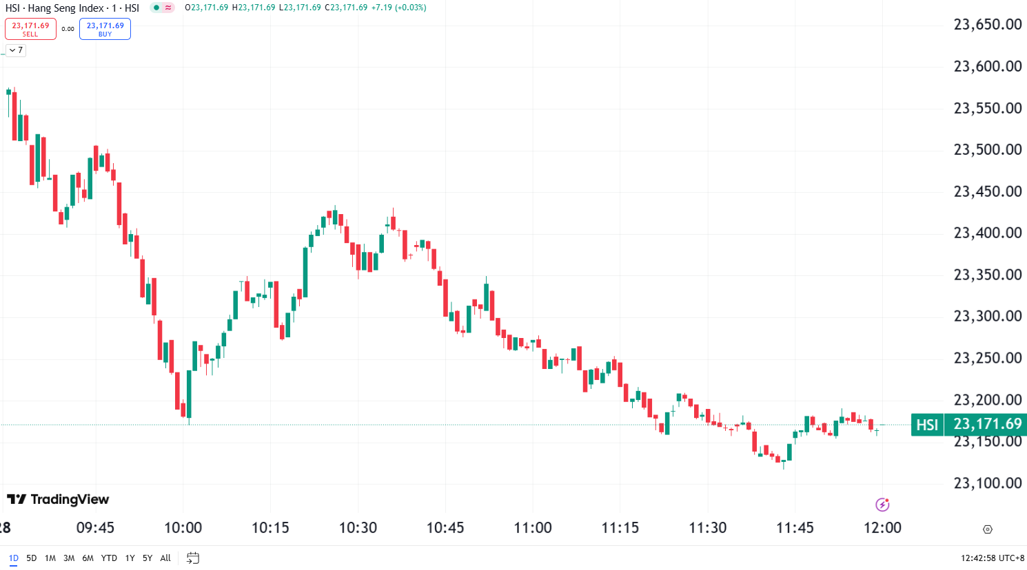 - Hang Seng Index: ▼ 2.30% to 23,171.69