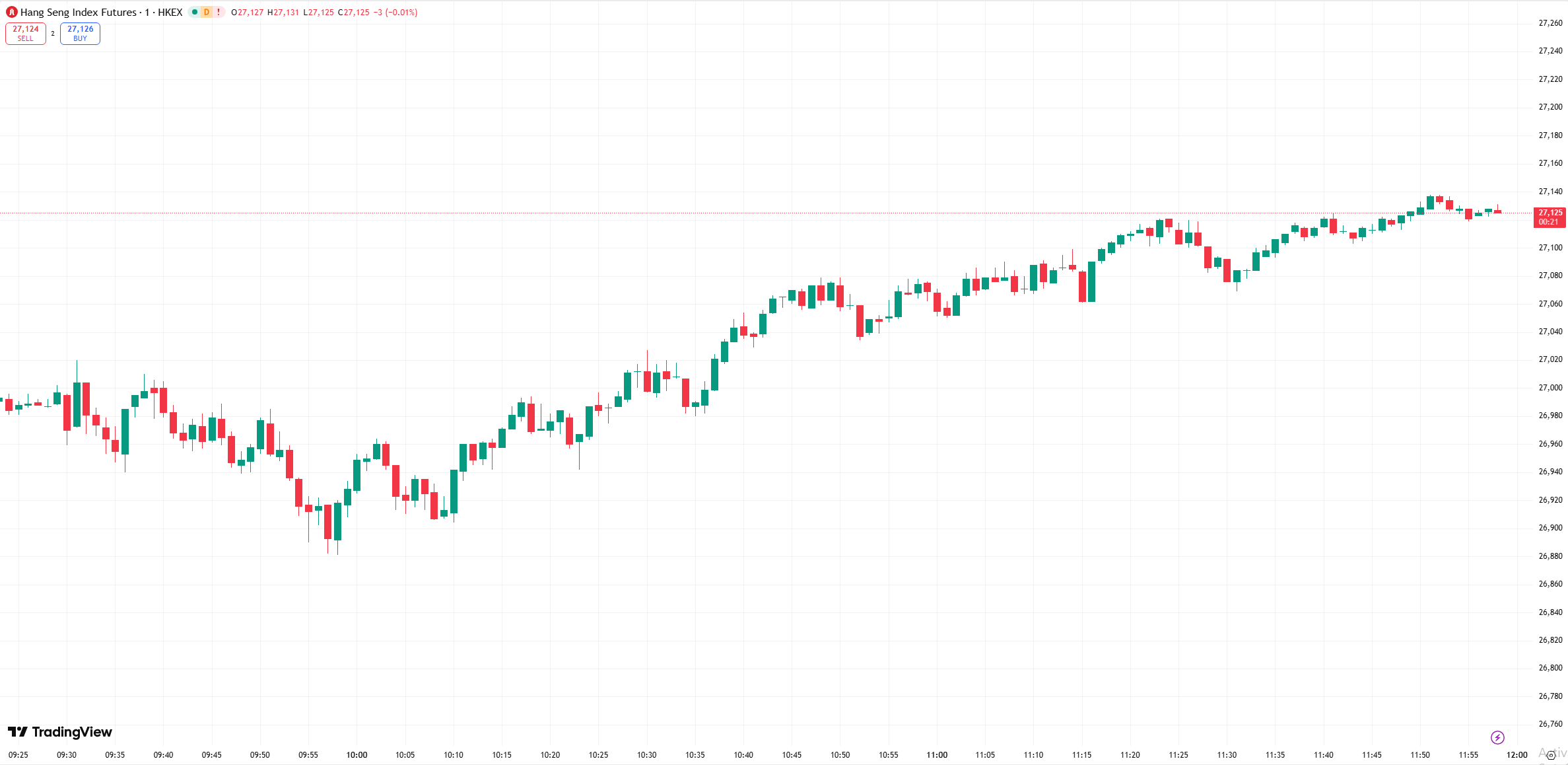Hong Kong markets rose across the board by midday, led by internet and healthcare stocks. Kuaishou and Alibaba jumped over 5%, Bilibili gained more than 4%, while Baidu rose over 2%.
