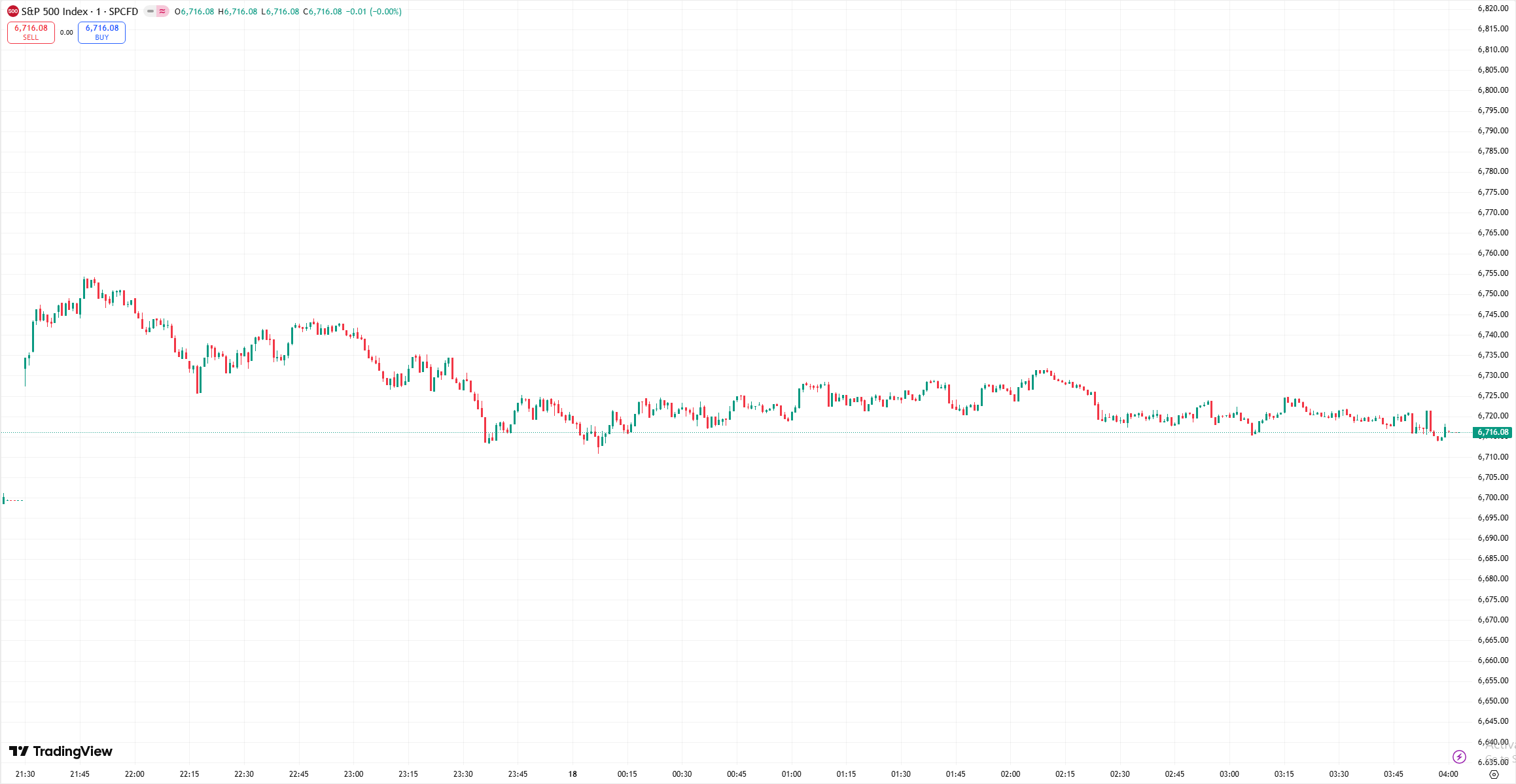 • 标普 500 指数涨 16.75 点,涨幅为 0.25%,报 6716.13 点