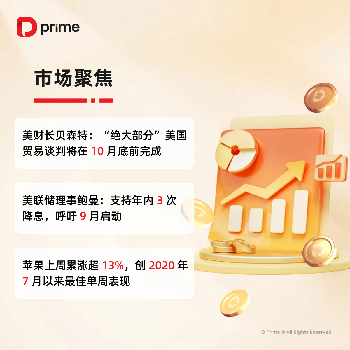 精选研报 | 在刚刚过去的周末,美财长发出关税重要信号,美联储理事鲍曼呼吁 9 月降息。苹果上周累涨超 13%,创 2020 年 7 月来最佳单周表现!本周重磅事件密集,美国 CPI 领衔多项重要数据来袭,多位美联储官员将密集讲话!还有哪些市场焦点值得留意?下方图片速览: