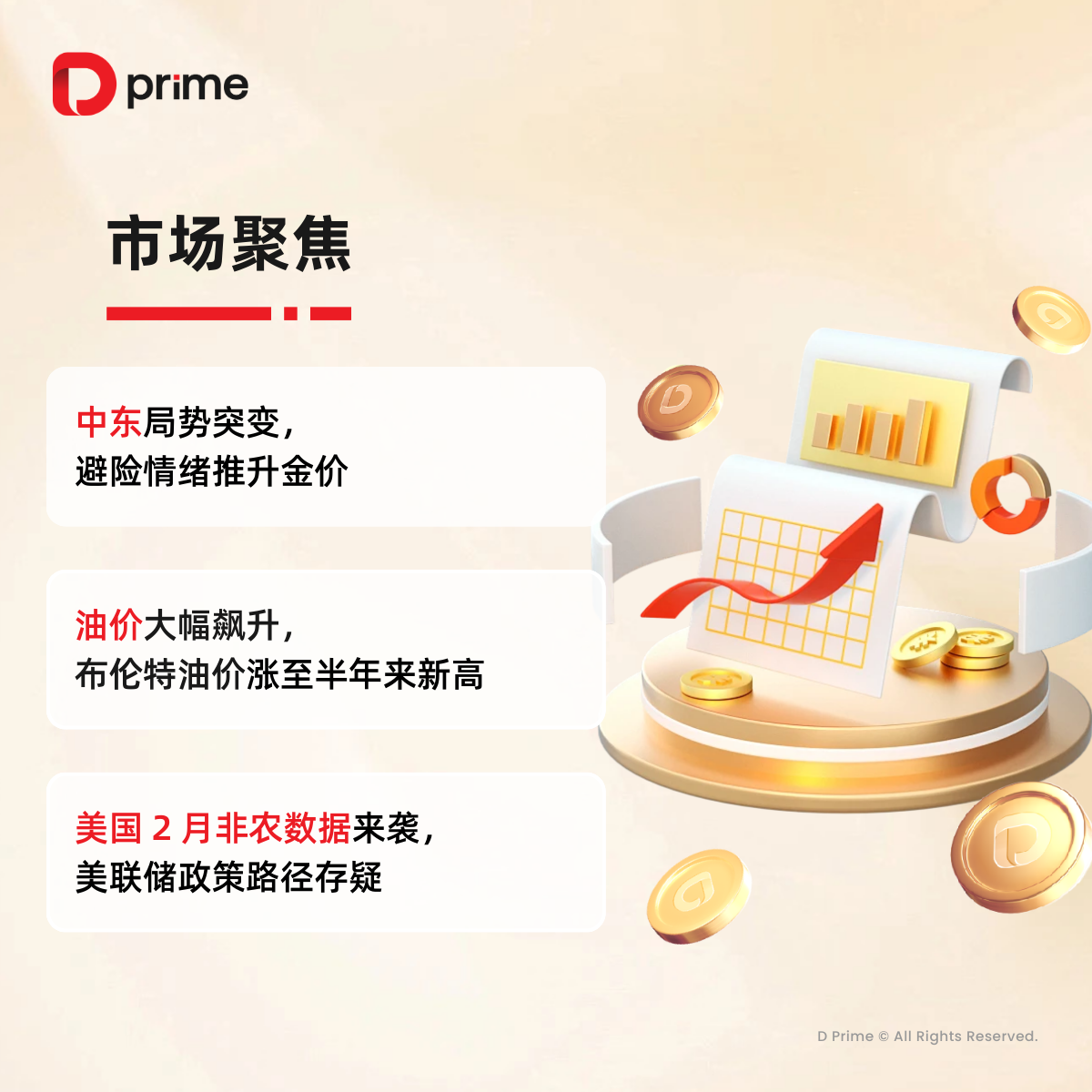 本周,美国 2 月非农数据来袭,美联储政策路径存疑,市场预计 2 月非农新增职位有 6 万个,远少过 1 月的 13 万个。 同时,由于中东地区发生突发性的地缘政治冲突,市场避险情绪大幅升温。