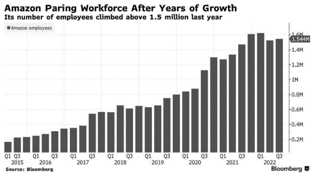 裁减超过 1.7 万名员工将是科技公司在当前经济放缓期间裁员最多的一次,但亚马逊的员工人数也远超过硅谷同行。