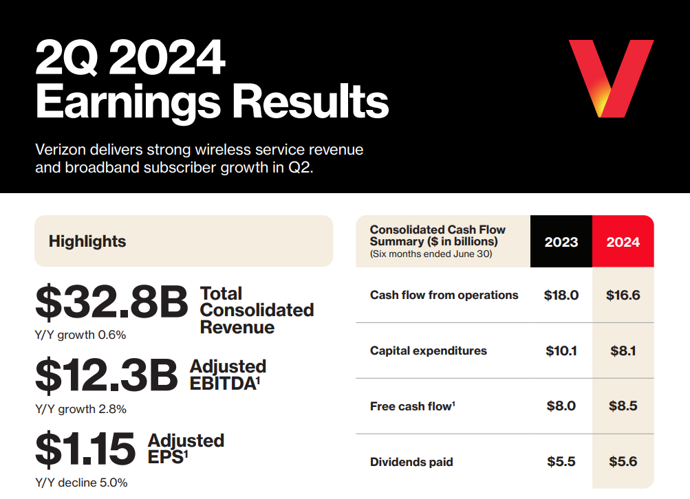 (威瑞森通讯公布了第二季度业绩,显示营收同比增长 0.6%,达到 328 亿美元,但低于分析师预期的 331 亿美元。调整后每股盈利为 1.15 美元,符合市场预期。 )