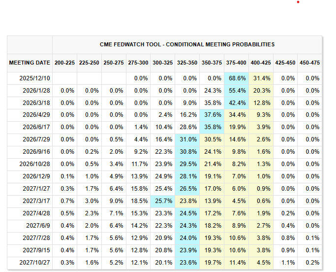 10 月 29 日至 30 日,美联储周三宣布再度降息 25 个基点,为今年第二次下调利率,并表示将于 12 月起停止缩减资产负债表规模。尽管市场押注年底前仍有进一步降息,美联储主席鲍威尔强调,目前委员会内部对未来利率路径分歧加大,12 月再次降息“并非板上钉钉”。