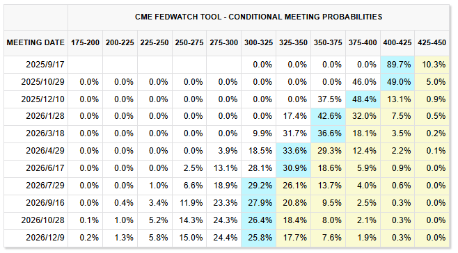 根据芝加哥商品交易所“美联储观察”工具,投资者押注美联储本月下调 25 个基点利率的概率已高达 89.7%。这意味着更低的借贷成本将进一步强化黄金作为无息资产的吸引力。