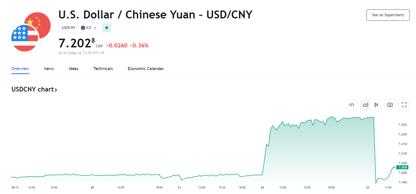 25 日开盘,离岸人民币兑美元升至 7.24,日内累计涨超 300 点。
