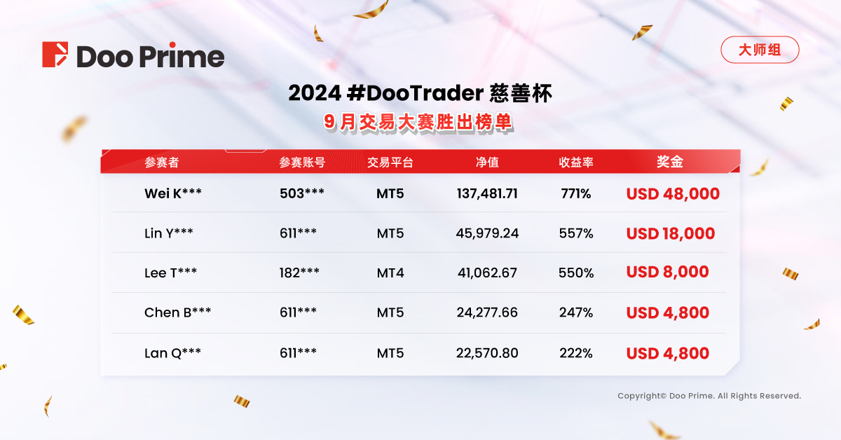 2024 #DooTrader 慈善杯 9 月交易大赛赛果出炉,选手以 1,200% 收益率问鼎冠军!